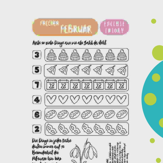 👉Einfach zählen, ausmalen und den Februar entdecken! Fördert logisches Denken, Kreativität, Motorik und Harmonie zu Hause.